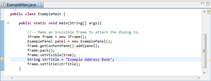 Here is for instance the ExampleMain.java editor view. Please