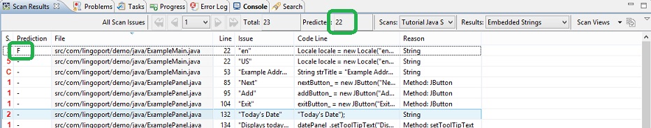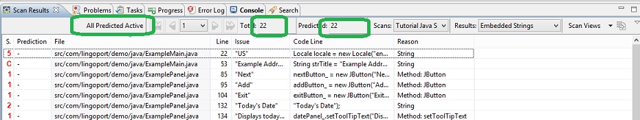 - Go through the Scan Results and mark the prediction of known false positives as F and use the Scan View All Predicted Active