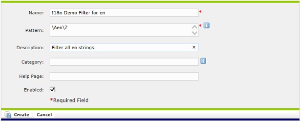 4. Set the field so that the new content filter pattern is \Aen\Z,