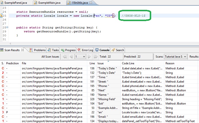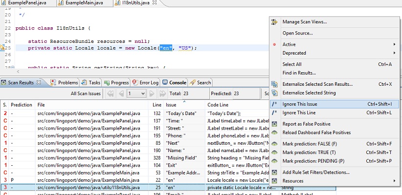 You would repeat the same steps to ignore "en" issue in ExampleMain.java's