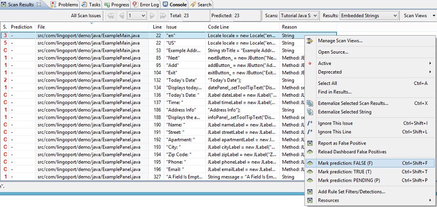and choose Mark Prediction: FALSE(F). This sets the prediction of the issue(s) to F.