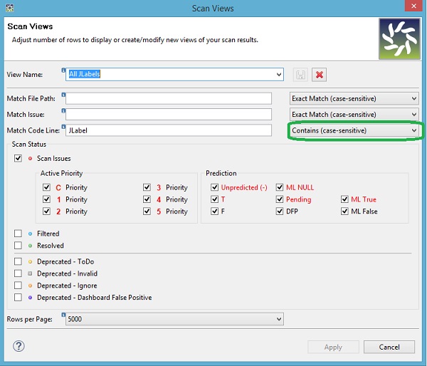 Views=>Manage Scan Views... option. Provide a View Name and fill in the text to match