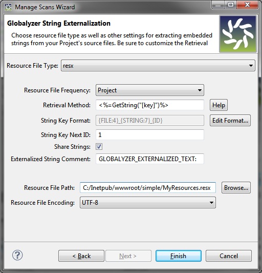 Globalyzer to place externalized strings in a .NET resx-style XML