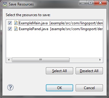 Only files that were modified since last being saved will show up in the list. To select or deselect a single file, click the checkbox next to the filename.